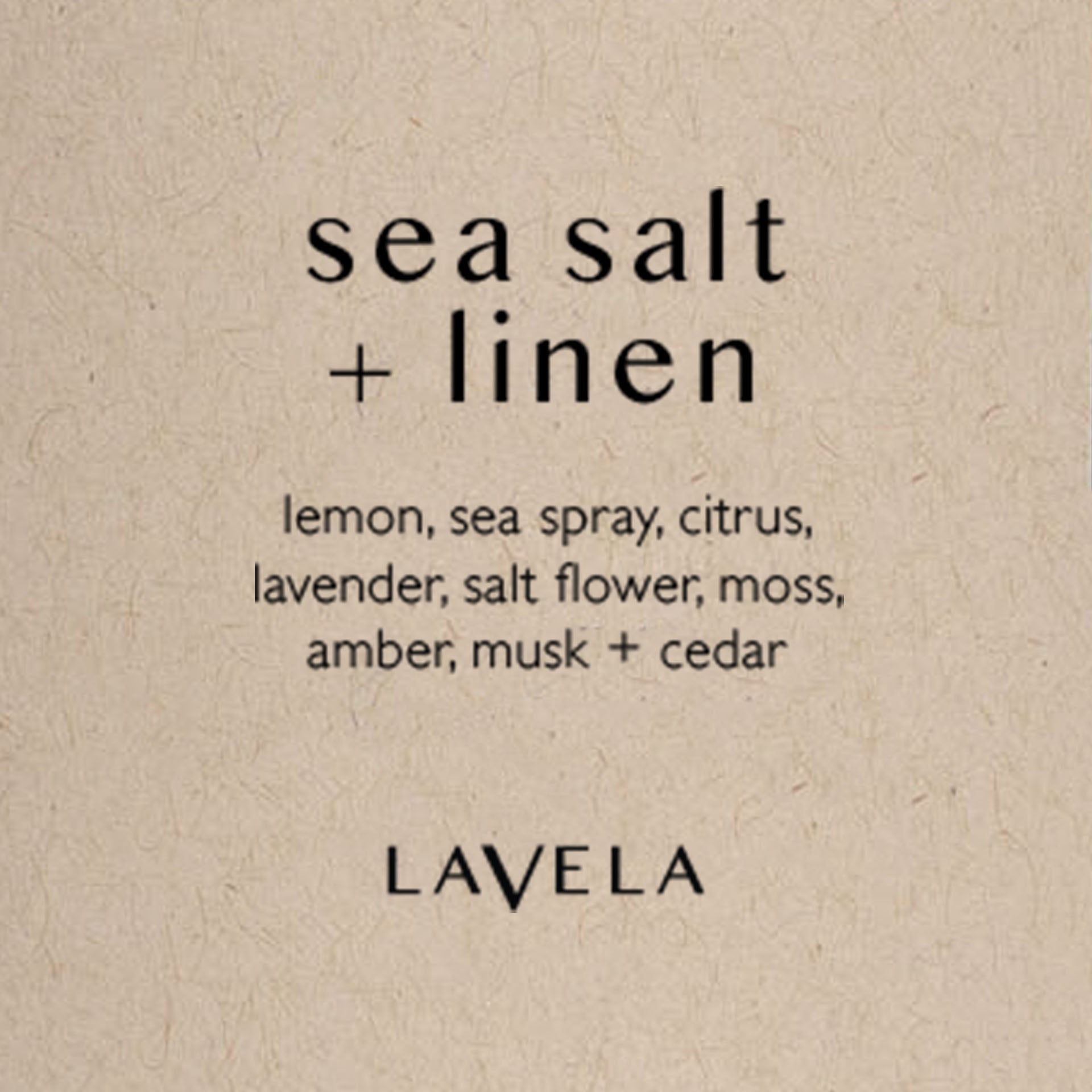 lemon, sea spray, citrus, lavender, salt flower, moss, amber, musk + cedar